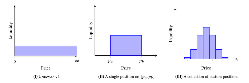 Uniswap V3 utilized concentrated liquidity, allowing liquidity providers to determine the range where their liquidity would be applied. This achieved the result of gathering liquidity around the current price, enhancing capital efficiency.
